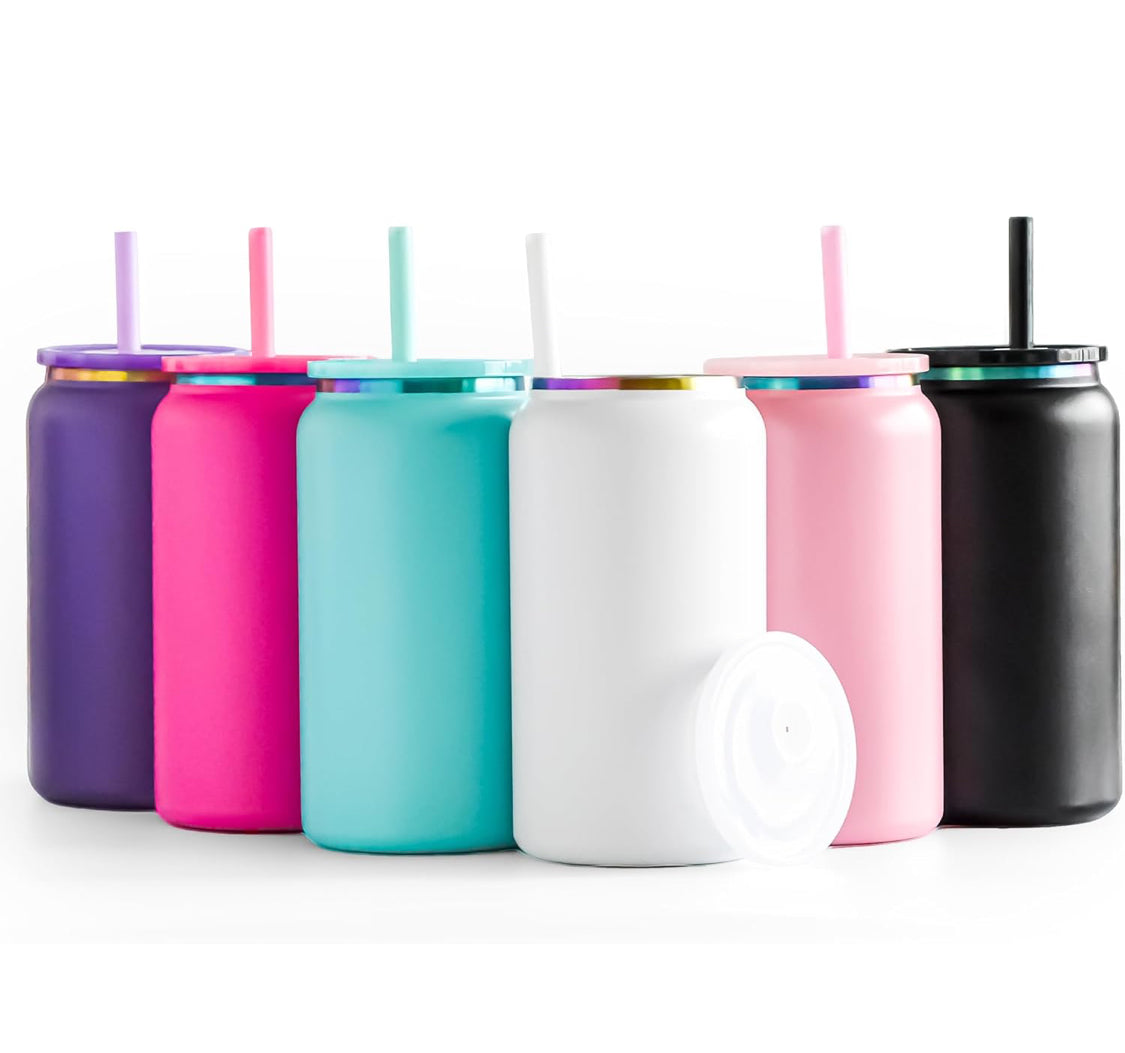 16oz Stainless Steel glass tumblers with matching lid and straw